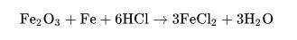 鹽酸一個最重要的用途是酸洗鋼材。在后續(xù)處理鐵或鋼材(擠壓、軋制、鍍鋅等)之前,可用鹽酸反應掉表面的銹或鐵氧化物。通常使用濃度為18%的鹽酸溶液作為酸洗劑來清洗碳鋼: