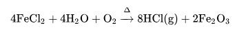 酸洗鋼材工業(yè)發(fā)展了鹽酸再生工藝,如噴霧焙燒爐或流化床鹽酸再生工藝等。這些工藝能讓氯化氫氣體從酸洗液中再生。其中最常見的是高溫水解工藝,其反應方程式如下: