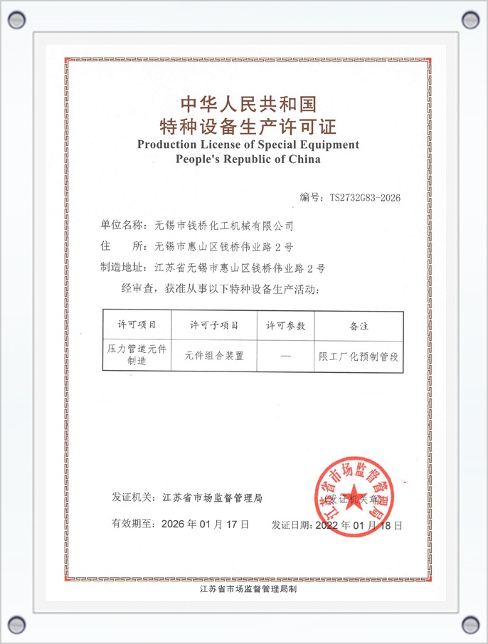 特種設(shè)備生產(chǎn)許可證(工廠化預(yù)制管段)