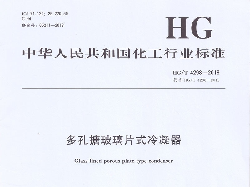 Wuxi Qianqiao Chemical Machinery Co., Ltd. participated in the drafting of the people's Republic of China chemical industry standard Hg / T 4298-2018 glass-lined porous plate-type condenser.? ...