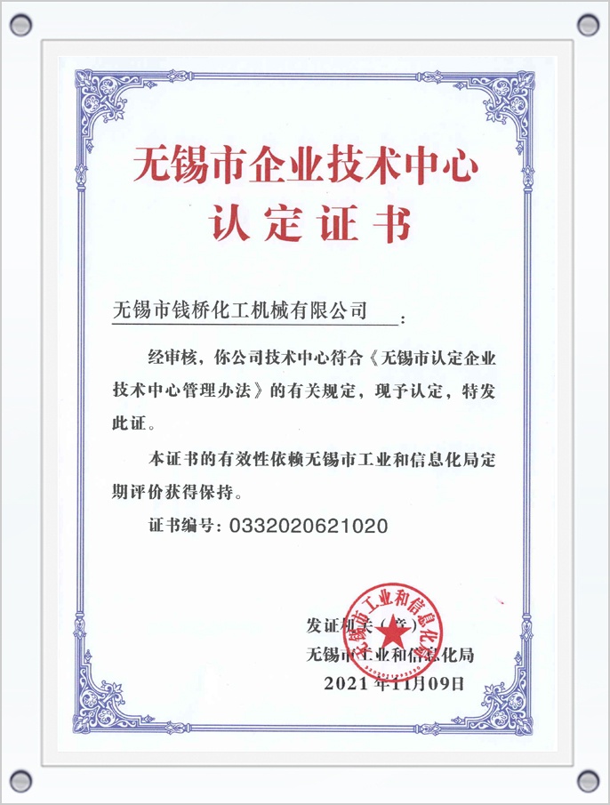 無錫市企業(yè)技術(shù)中心認(rèn)定證書