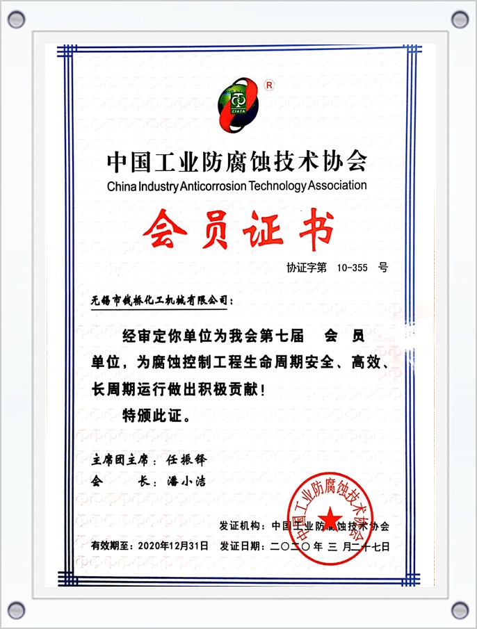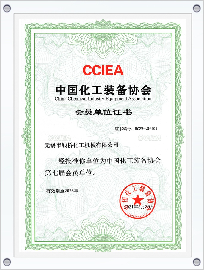 中國(guó)化工裝備協(xié)會(huì)會(huì)員單位證書