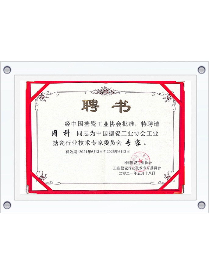 中國(guó)搪瓷工業(yè)協(xié)會(huì)工業(yè)搪瓷專家聘書