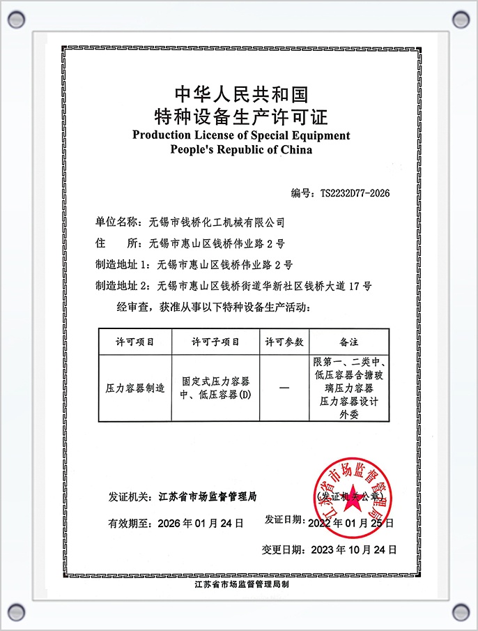 特種設(shè)備生產(chǎn)許可證(壓力容器制造)