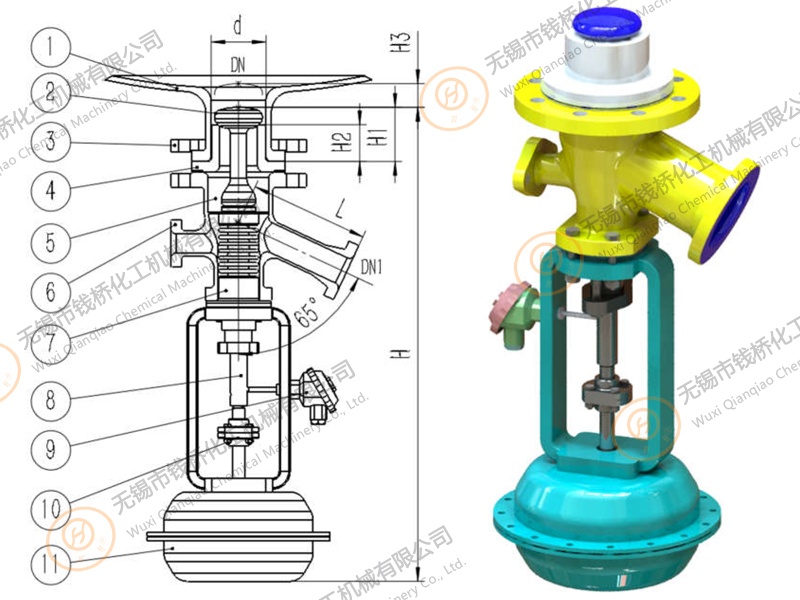 8、閥桿,9、熱電阻,10、聯(lián)軸器,11、氣缸執(zhí)行機(jī)構(gòu)